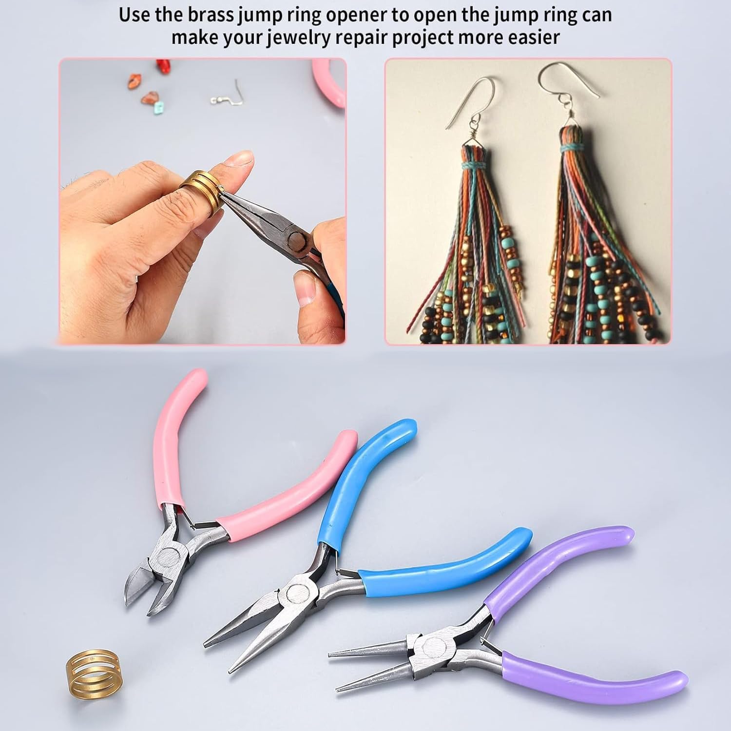 - Package Includes: You will receive 3 pieces jewelry making pliers, including needle nose pliers, round nose pliers, cutting pliers, and one tweezer, a jump ring, which is enough for your jewelry making. Ideal for cutting thin metal wire or flexible jewelry string wire.