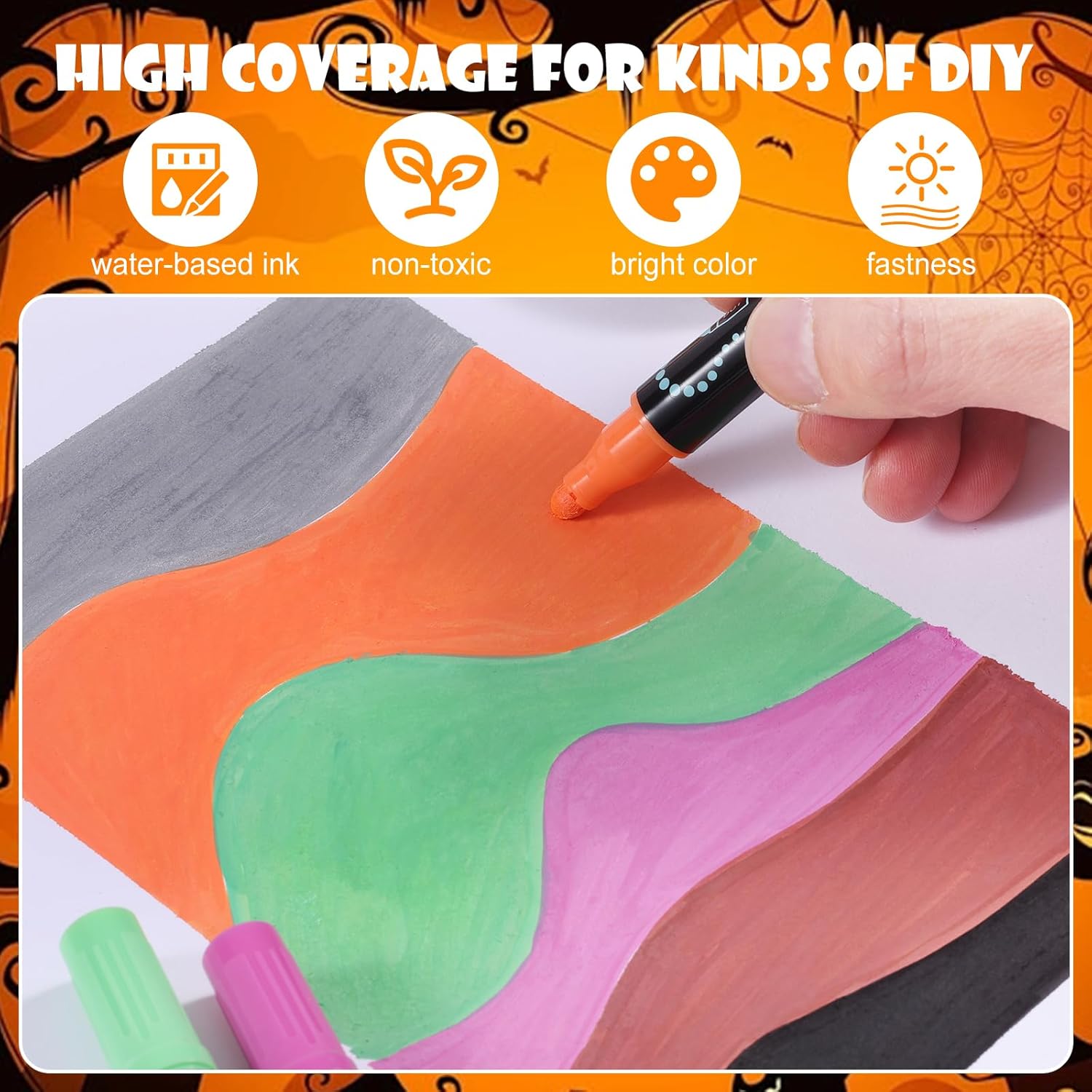 - Widely Used Painting Pens: Our dual-tip acrylic paint pens work on almost any surface, not only paper but also beautifully on rocks, wood, mugs, canvas, fabric, leather, ceramics, tiles, glass, resin, tires, balckboard, window, car, christmas ornament, jar labels, add decoration to graffiti, card making, bullet journal, pumpkin designs, easter eggs, and other smooth or porous surfaces. The The wide uses brings more creative possibilities to your art projects.