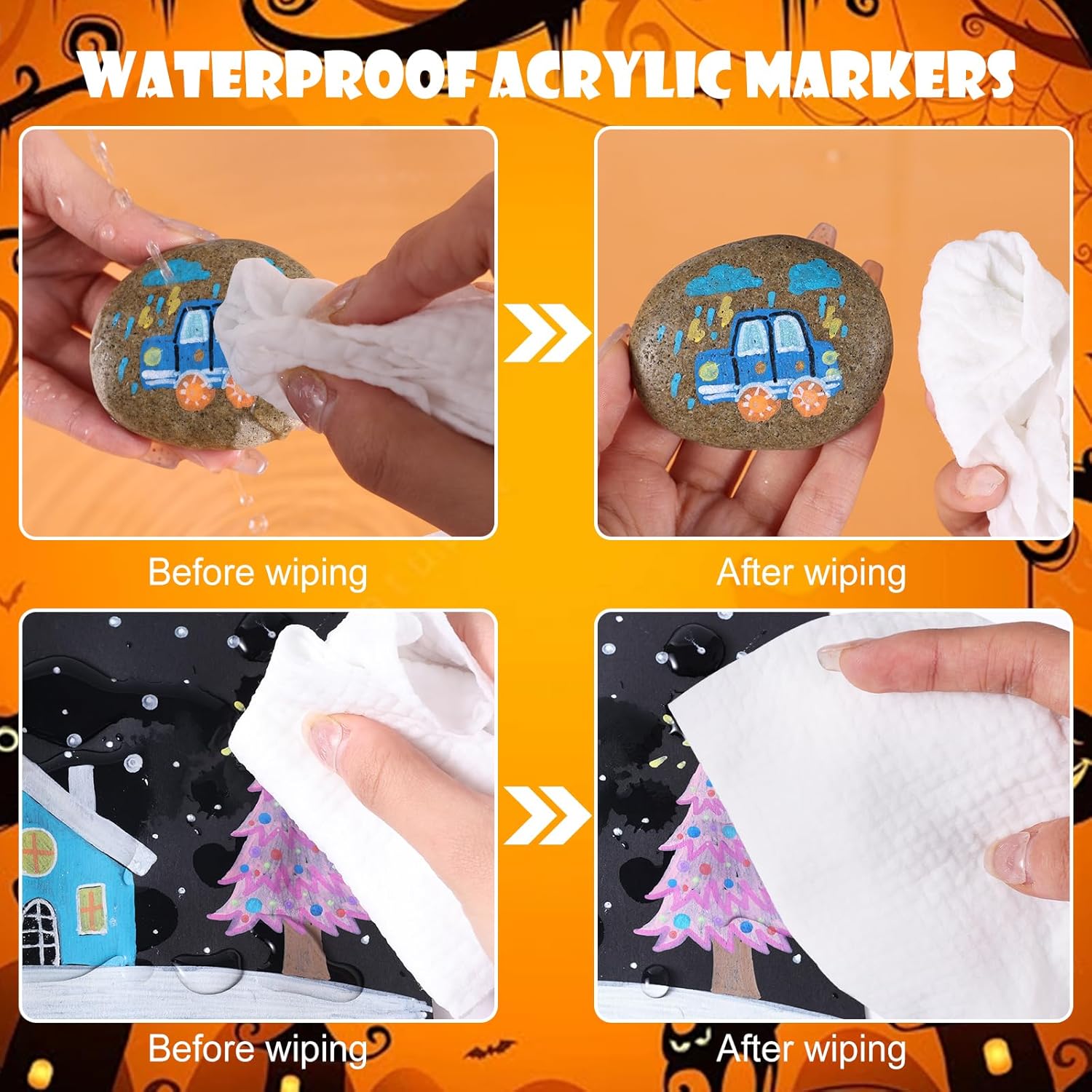 - Upgraded Waterproof and Easy to Use: Our new acrylic paint set do not require shaking or pressing the pen tip to release ink—just open the lid and start using them directly! Coloring Markers set are made with water-based ink, which providing a smooth, consistent application with even ink flow for a more effortless painting experience. The resulting artworks are brightly colored, waterproof, fade-resistant, and sun-resistant, making them ideal for long-term preservation.