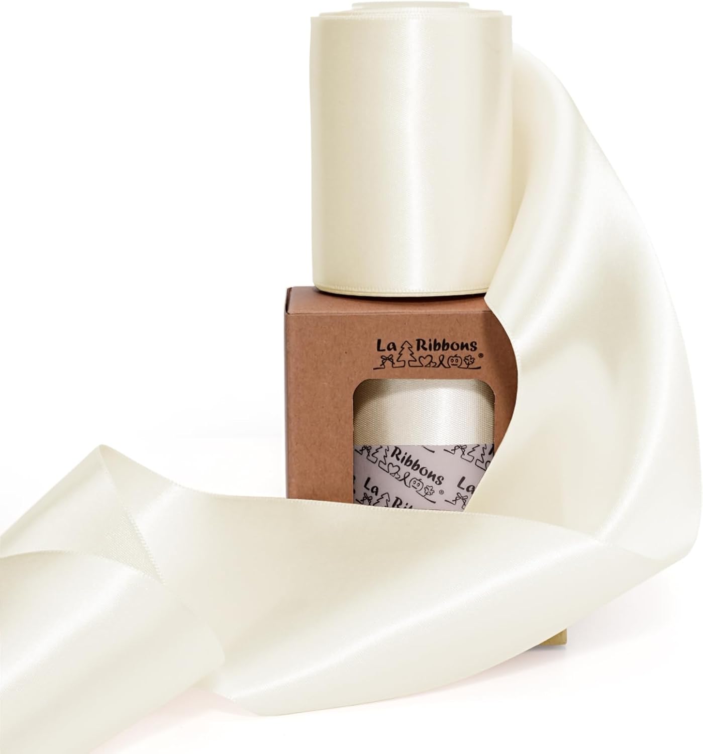 LaRibbons Ivory Satin Ribbon 3 Inch 10 Yards Double Faced Luxury White Cream Silk Ribbon for Gift Wrapping Flower Bouquets Bow Christmas Wedding Party Decoration