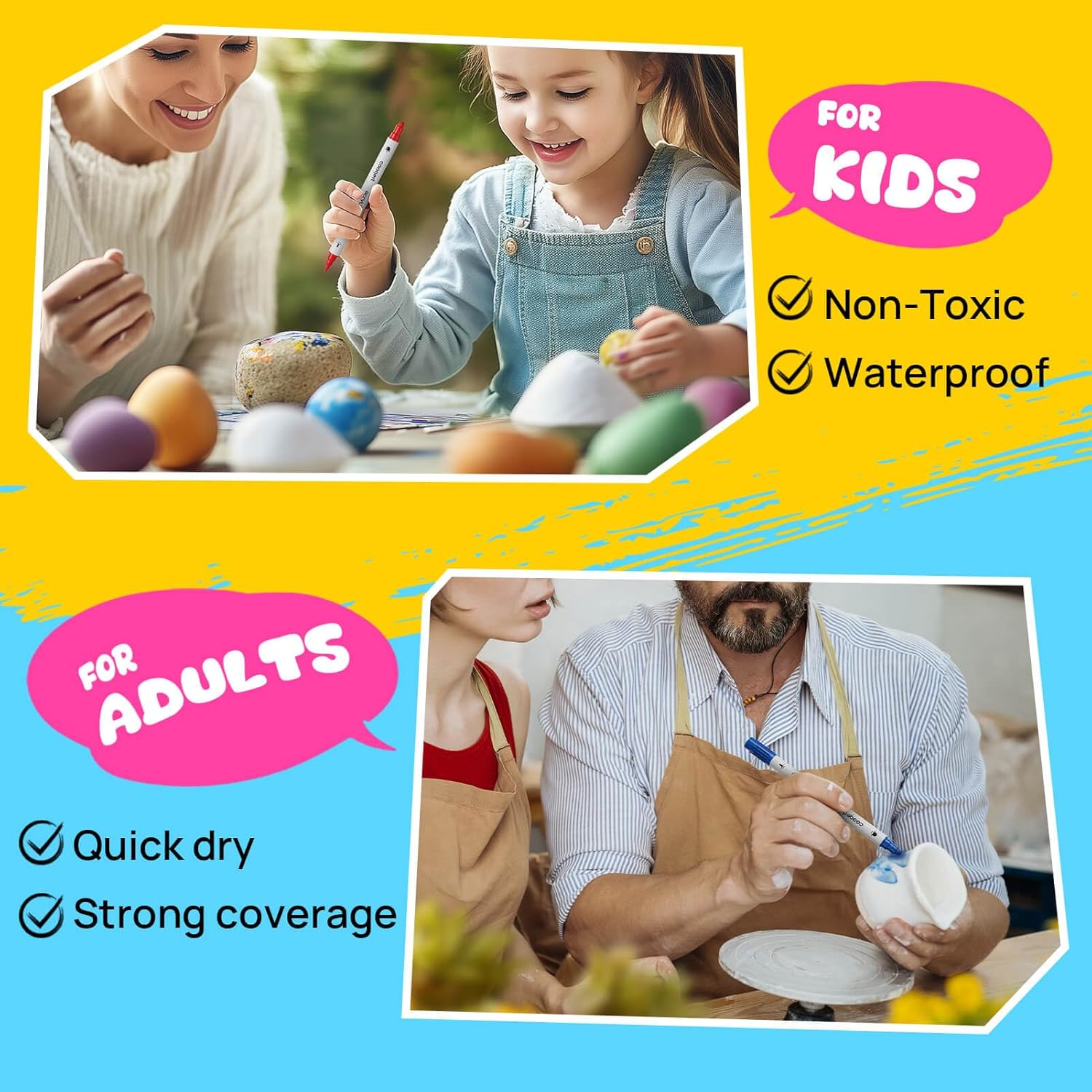 - 【12 Vibrant Colors】Coogert acrylic pens are made with water-based ink. acrylic paint pens flow without flooding or jamming, paint pens paint markers bulk are perfect for artists, art students, children, teens, kid and adults to use on arts and DIY crafts projects, paintings